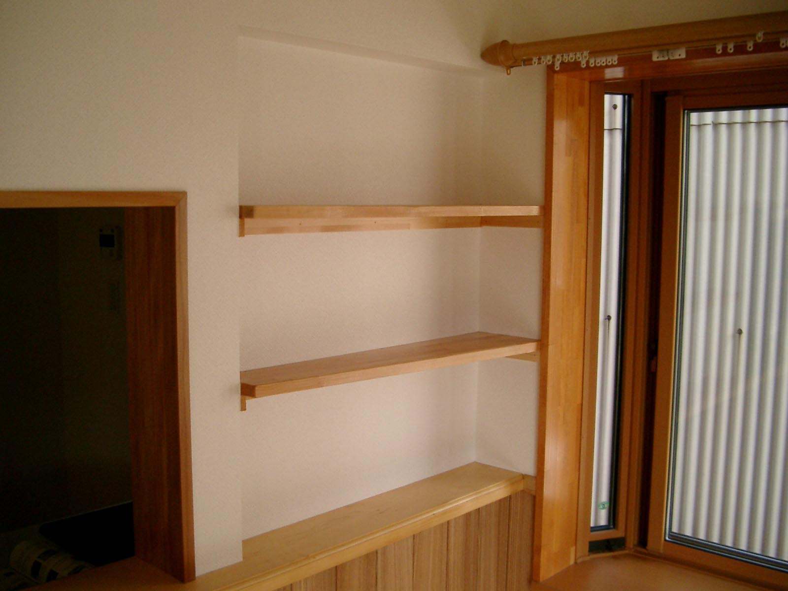 施主様が持ってきて下さいました雑誌の記事を基に大工さんが心をこめて造りました。施主様が色を塗るという事で無塗装です。 |